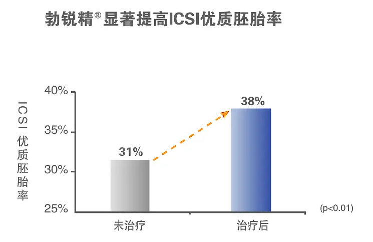 - 试管婴儿(ICSI)优质胚胎率(未治疗31%,治疗后38%)。