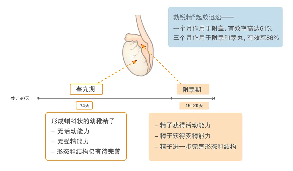 口服一个月后,勃锐精可迅速提高附睾中已存精子的活动能力和受精能力。一个月的有效率达60%以上,3个月高达86%。