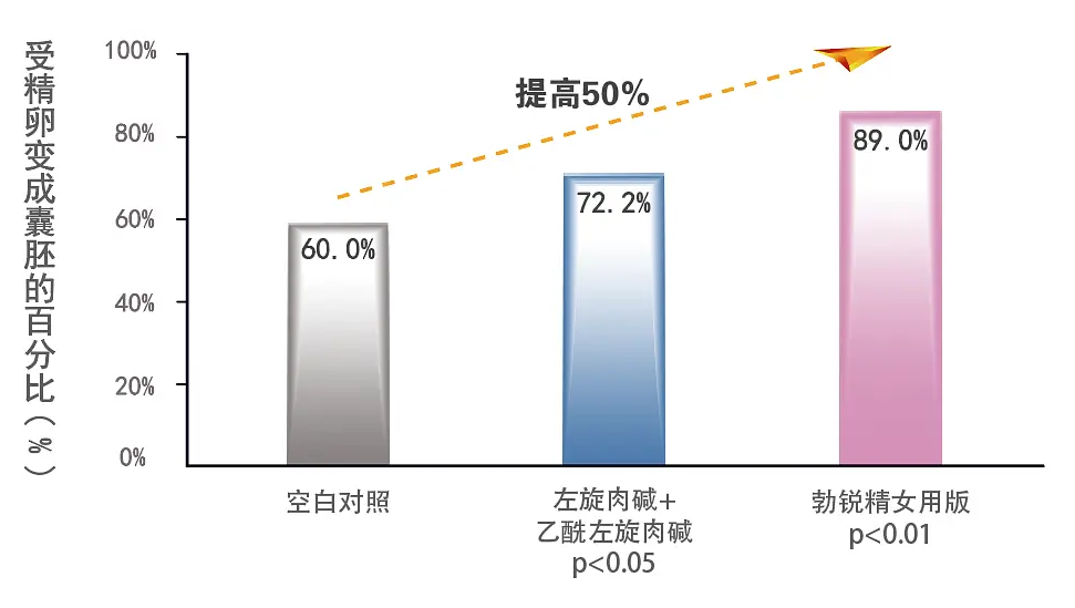 复合左旋肉碱的疗效(前向活动精子的增加程度)是单用左旋肉碱的2.5倍 ——美国《生殖与不孕不育》杂志发表: