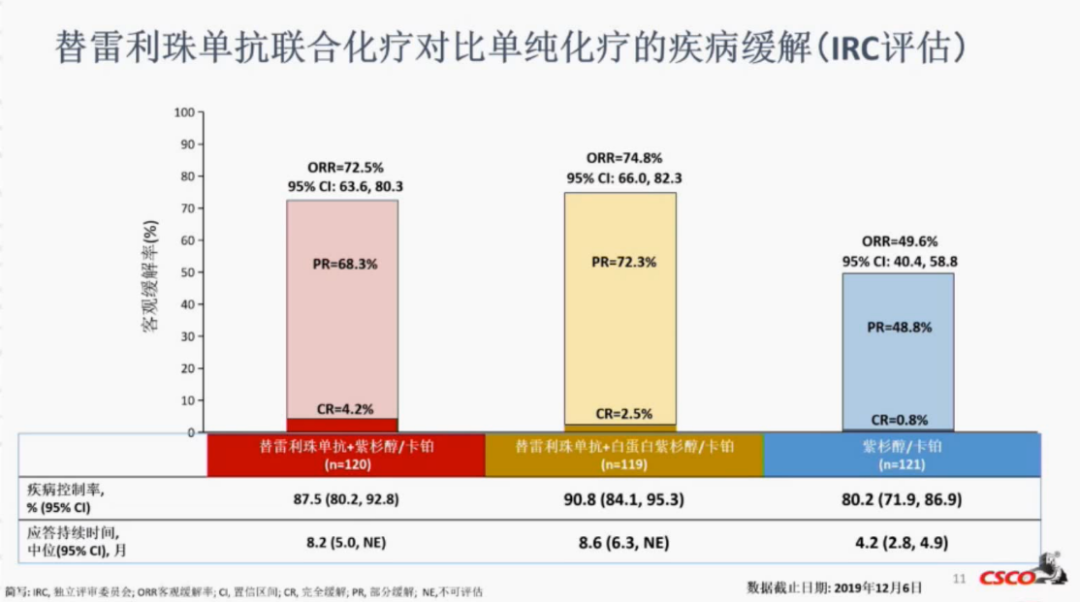 图5 替雷利珠单抗联合化疗对比单纯化疗的疾病缓解情况(IRC评估)
