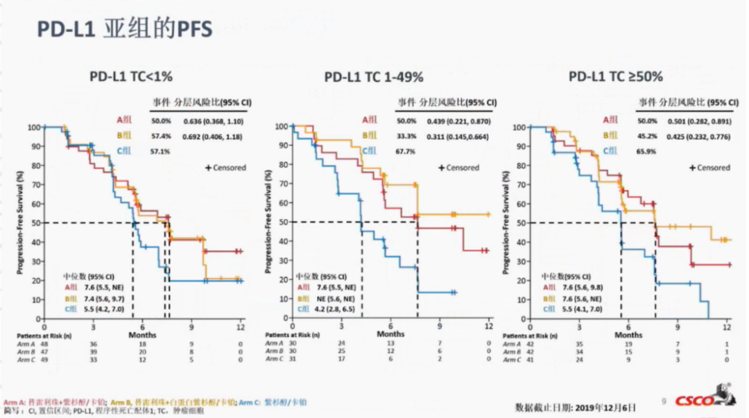 该研究还对PD-L1亚组的PFS进行了亚组分析,结果显示,患者PFS的改善与PD-L1的表达水平无关。