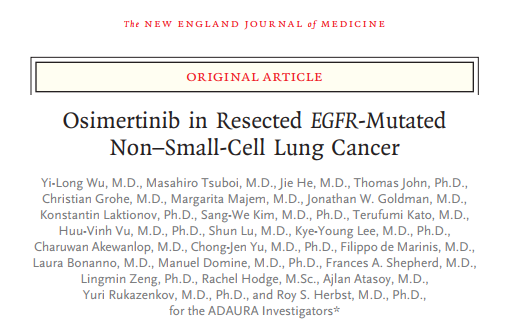 [7] Osimertinib in Resected EGFR-Mutated Non–Small-Cell Lung Cancer ,published on September 19,2020, at NEJM.org. DOI: 10.1056/NEJMoa2027071