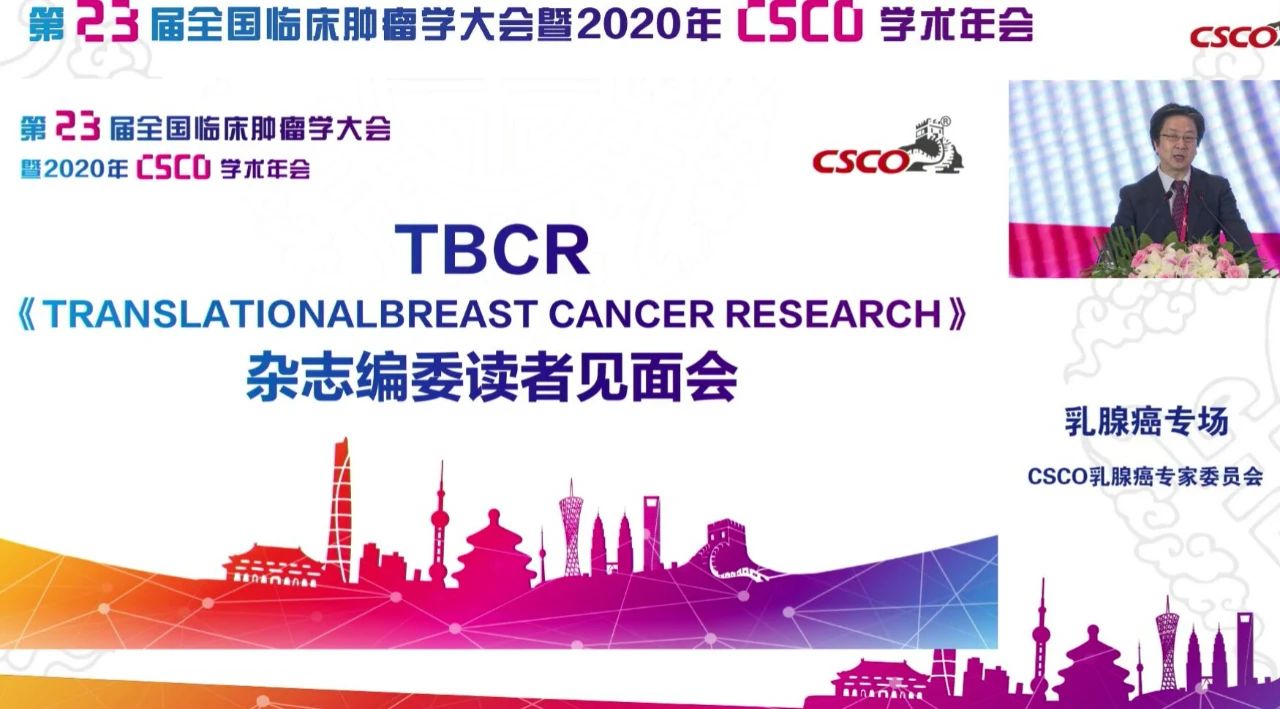 9月21日下午,第23届全国临床肿瘤学大会暨2020年CSCO学术年会举办乳腺癌专场。乳腺癌专场精心设计,亮点颇多,包括不同分子分型乳腺癌患者的个体化治疗讨论,《转录 BREAST CANCER RESEARCH》(TBCR)杂志创刊以来首场编委读者见面会。TBCR是中国学者创办的英文期刊,今年四月创刊后,受到国内和国际上同道的欢迎。在TBCR读者见面会环节,TBCR编委和读者齐聚一堂,现场剖释TBCR期刊的使命和愿景。