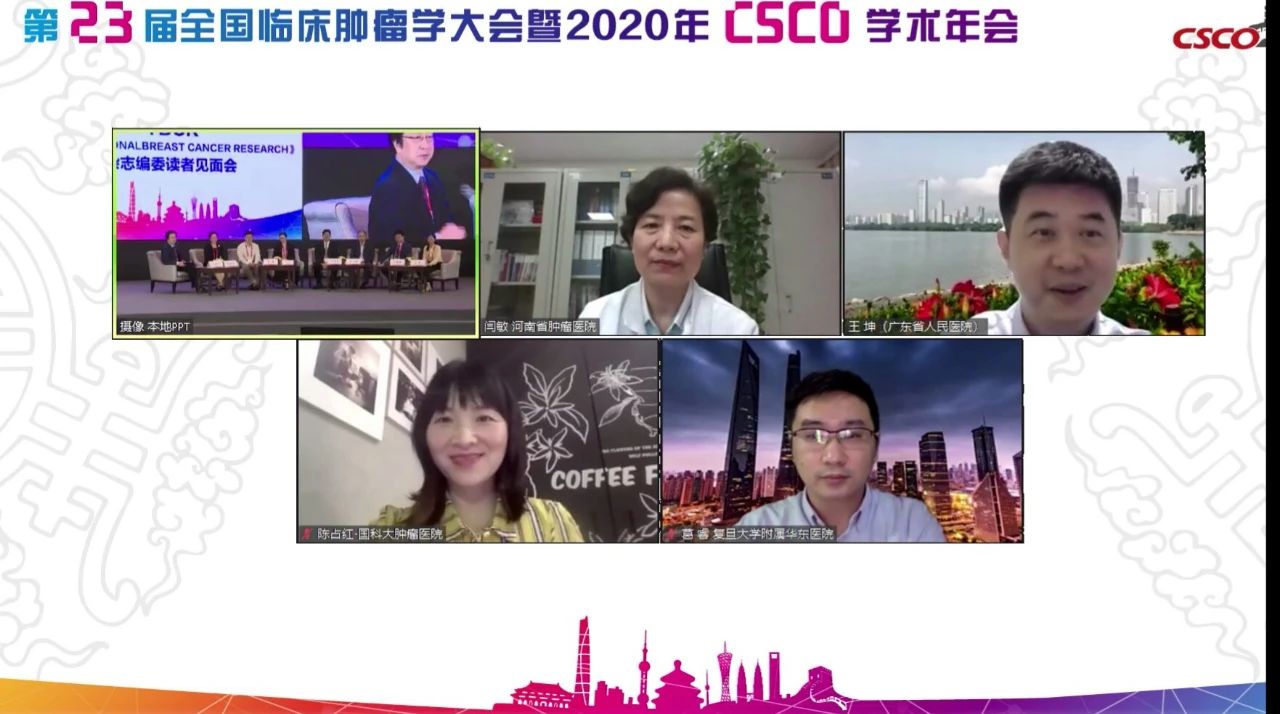 在江泽飞教授的主持下,通过现场讨论和远程连线的形式,TBCR的编委和读者进行深入交流。PHENIX研究的作者河南省肿瘤医院闫敏教授、广东省人民医院王坤教授分享了投稿TBCR的经验;复旦大学附属东华医院葛睿教授认为中国的原研药需要有自己的国际学术平台,特别是原研药与国际药物进行对比研究时;中国科学院大学附属肿瘤医院陈占红教授表达了对TBCR未来发展的期望;北京大学人民医院王殊教授认为在创刊之初,TBCR需要每一位国内同道贡献力量;青岛大学医学院附属医院王海波教授分享了开展真实世界研究的经验;TBCR编委、山东大学第二医院余之刚教授认为创办TBCR是在正确的路上做正确的事;TBCR编委、浙江省肿瘤医院王晓稼教授表达了为TBCR投稿的愿望;中山大学孙逸仙纪念医院刘强教授指出优秀稿源是TBCR发展的生命力。最后,江泽飞教授介绍了TBCR稿件的要求,TBCR既可以刊登一些成功的研究结果,也可以发表一些早期的探索性研究,介绍引人思考的研究设计和初步结果,以及有价值有意义的典型个案;TBCR的优势是既方便中国医生阅读,也有利于国外学者参考和交流。希望TBCR伴随中国学者共同成长,成为中国乳腺肿瘤研究的助力。