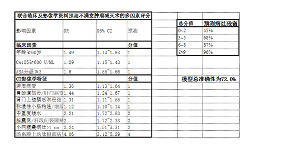 哪些评分可以预测卵巢癌是否能行满意的肿瘤减灭术?