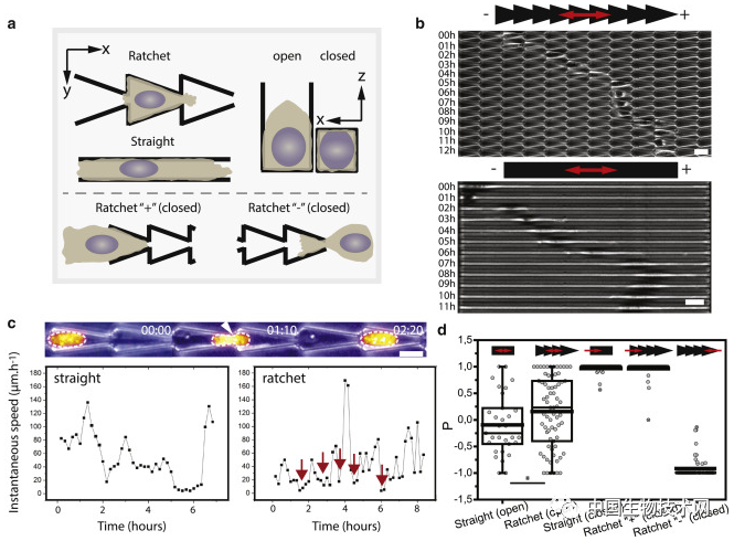 在这项研究中,斯特拉斯堡大学的分子生物学家Emilie Le Maout及其同事建立了一个棘轮通道模拟毛细血管,并在其中设置了障碍:有些是开放型的,有些是狭窄的,有些瓶颈设置的比细胞核本身还要小。