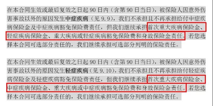 轻症责任针对50种轻症不分组赔付3次,无间隔期,依次赔30%、35%、40%保额。