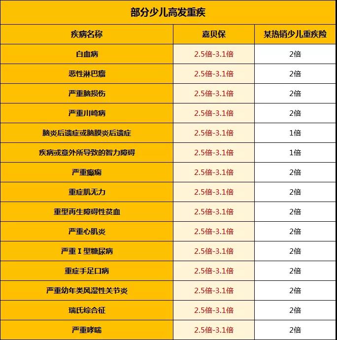 嘉贝保不仅覆盖的少儿高发特定疾病种类更多,赔付比例也相当给力!