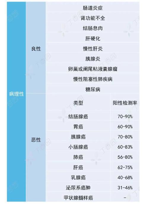 注:CEA 血浆半衰期为 1-7 天。由于 CEA 主要通过肝脏(库普弗细胞和肝细胞)来清除,所以当胆汁淤积或肝细胞发生疾患时,都会延长 CEA 的半衰期,进而导致 CEA 的假阳性率升高。