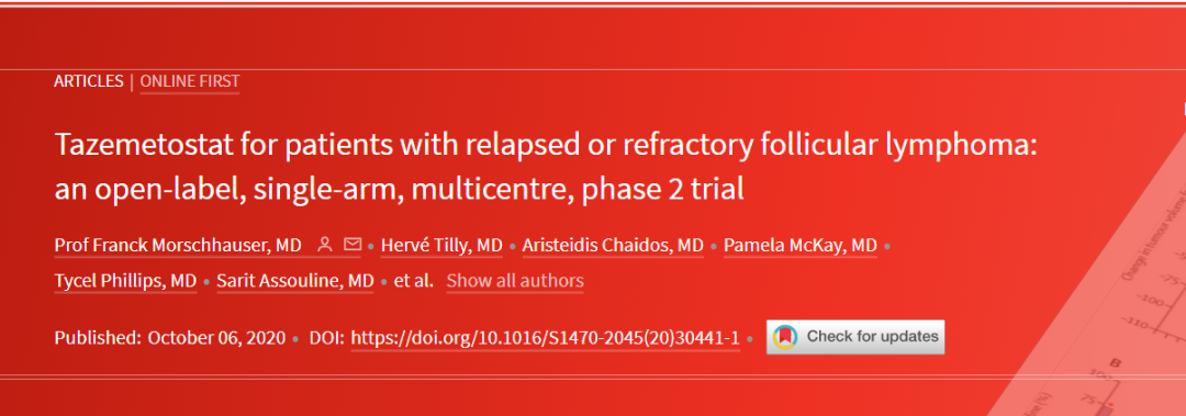>>>> 1. Lancet Oncology:Tazemetostat单药治疗在滤泡性淋巴瘤患者中显示出临床意义的持久反应