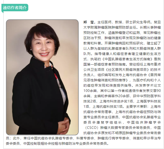 复旦大学附属肿瘤医院肿瘤预防部,复旦大学上海医学院肿瘤学系,上海200032