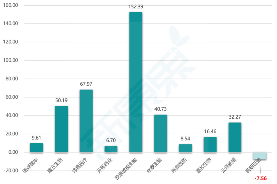 2020年11月3日,药明康德与JunoTherapeutics对等股权投资创办的药明巨诺(JW Therapeutics)在港交所挂牌上市,发行价每股23.8港元,当日以22.00港元收盘,较发行价下跌7.56%。截至目前,在2020年10家登陆港股的未盈利医药企业,仅有药明巨诺在上市首日破发(图表8)。