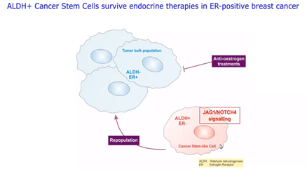 在此次SABCS大会上,来自曼彻斯特的Clarke教授分享了一种观点。ALDH阳性的乳腺癌细胞,更容易出现内分泌治疗耐药以及转移。而在这个过程中,白细胞介素IL-1&β;和IL-6起到了非常重要的作用。