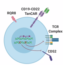 基于CD19和CD22在ALL中的高表达,黄河教授团队设计了双靶点通用型CAR-T细胞产品:通过CRISPR/Cas9技术敲除了TRAC和CD52基因从而降低宿主介导的免疫排斥,并利用二代慢病毒转导进行CD19/CD22 CAR-T细胞制备,同时还为其装上了一个自杀基因。