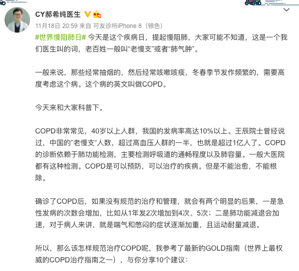 你现在在微博中搜索肺结节,还能很容易看到我的科普。
