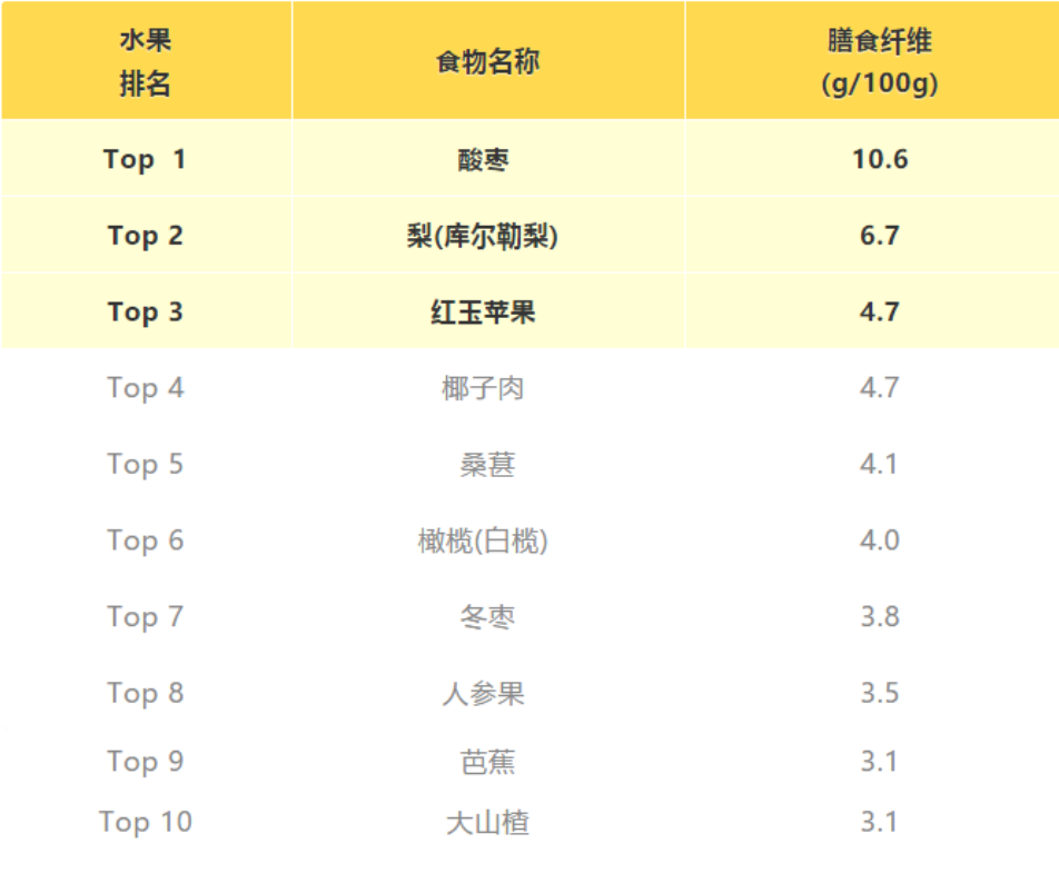 图2:水果膳食纤维含量表排名/图片来源:科普中国