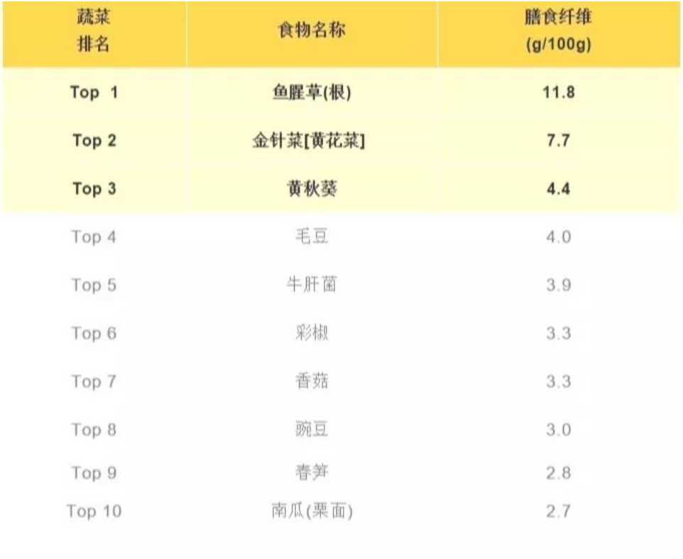 图1:蔬菜膳食纤维含量排名表/图片来源:科普中国