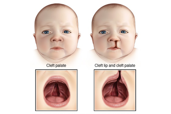 - 腭咽功能不全(VPI):这是22q11.2微缺失综合征患者的一个常见面部特征,它包括在哭泣、吞咽和说话时,上颚无法与喉咙接触,这通常会导致听起来说话像鼻音(高鼻音),或进食时液体会从鼻子流出。通常这种情况可以通过矫形手术解决。