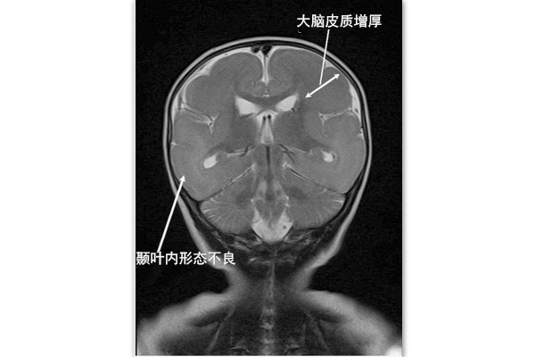 Miller-Dieker综合征(MDS)的典型特征是脑部CT显示为大脑无褶皱和沟槽,大脑皮层异常光滑。其余相关临床症状还有: