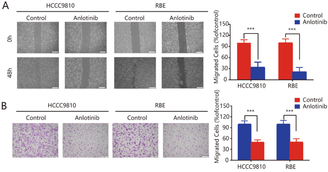 安罗替尼通过抑制上皮-间质转化(EMT)抑制ICC细胞的迁移和侵袭