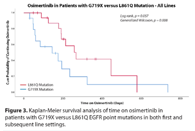 在今年的ASCO会议上,多项EGFR敏感突变相关研究数据公布。其中,III期NEJ02研究旨在评估贝伐珠单抗联合厄洛替尼用于EGFR敏感NSCLC患者的疗效,结果显示2,贝伐珠单抗联合厄洛替尼可明显改善PFS。在真实世界研究中发现3,VEGF抑制剂联合厄洛替尼对比单药厄洛替尼,PFS和DOR明显改善。目前,奥希替尼已获批用于敏感EGFR突变(19外显子缺失和L858R突变,占EGFR突变的80%)晚期NSCLC患者的一线治疗,或用于既往EGFR-TKI治疗进展后的T790M突变阳性患者。但是,奥希替尼用于不常见EGFR突变的疗效还不确定,因此有研究评估了奥希替尼用于非敏感EGFR突变患者的疗效,结果显示,L861Q突变和19外显子插入突变可以从奥希替尼治疗中获益更大4。此外,ADAURA研究、中国CTONG1104研究等EGFR辅助治疗研究也获得较好结果。