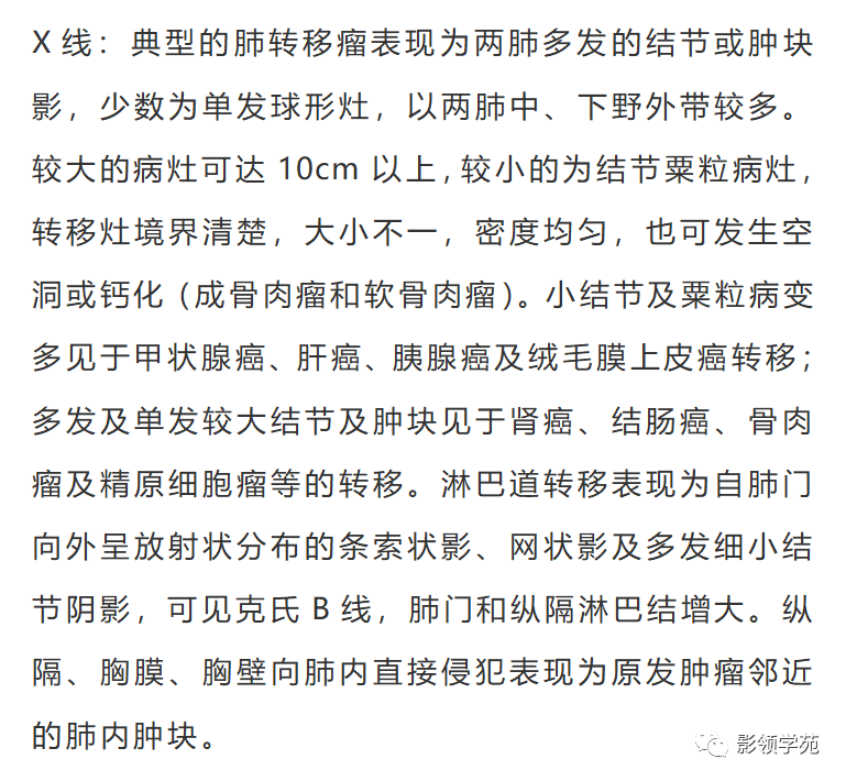 2.原发肿瘤大多明确,有的先发现肺部转移瘤,而后才发现原发灶。