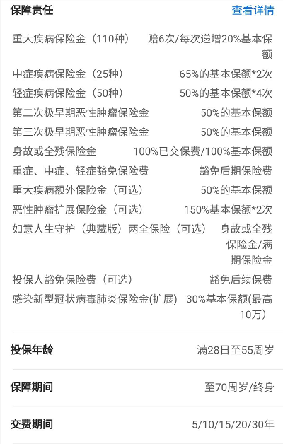 基本保障 6 次重疾、2 次中症、4次轻症