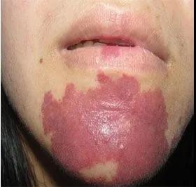 微静脉畸形,又称为鲜红斑痣或葡萄酒色斑,多在表皮和真皮层发病,一旦挠或者摩擦就会破裂出血。出汗后皮肤表面一痒,一旦抓破,就会造成感染,甚至溃疡,容易留下疤痕,影响美观。