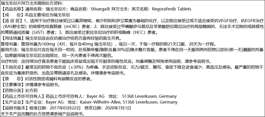 [3] Bruix J, Qin S, Merle P, et al. Regorafenib for patients with hepatocellular carcinoma who progressed on sorafenib treatment(RESORCE): a randomised, double-blind, placebo-controlled, phase 3 trial. Lancet. 2017. 389(10064): 56-66.