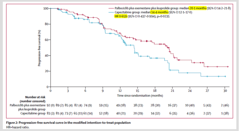 1. Park YH, Kim TY, Kim GM et al. A randomized phase II study of palbociclib plus exemestane with GNRH agonist versus capecitabine in premenopausal women with hormone receptor-positive metastatic breast cancer(KCSG-BR 15-10, NCT02592746). JCO 2019; 37(15_suppl):1007–1007.